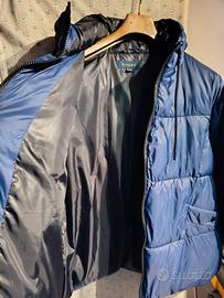 vendo giubbotto blu con cappuccio e zip ai polsi, usato pochissimo consegna a mano