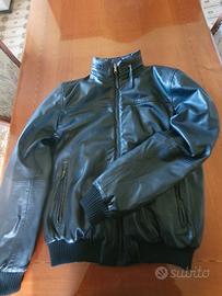 Giubbotto bomber da uomo, in VERA pelle, marca Enrico Coveri, colore nero, taglia 46, con cappuccio a scomparsa con zip.