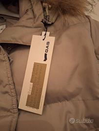 vendo giubbotto donna bomber nuovo mai usato color tortora in vero piumino d oca con cappuccio e con ancora cartellino attaccato come da foto .