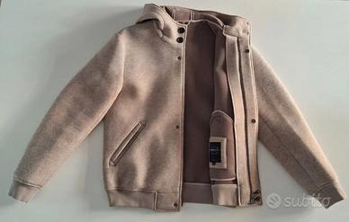 Bellissima Giacca bomber in panno con cappuccio da uomo. Perfetta per un outfit casual-chic. Rivestimento Interno in neoprene resistente al freddo, chiusura con zip a doppio cursore e bottoni. Indossata 1 volta, nuova,