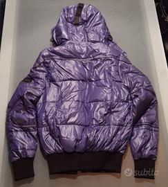 GIUBBOTTO BOMBER IMBOTTITO UNISEX MARCA DATCH (mod. "N. 56 LMTD EDITION" - "DRAWING NO. 56-009"), COLORE VIOLA BRILLANTE, CON CHIUSURA ANTERIORE A ZIP, CAPPUCCIO ASPORTABILE TRAMITE ZIP E CHIUDIBILE CON BOTTONI AUTOMATICI E CORDINO ELASTICO REGOLABILE, NR. 6 TASCHE ESTERNE CON BOTTONI AUTOMATICI E NR. 1 INTERNA A ZIP, POLSINI E GIROVITA IN MAGLIA ELASTICA NERA H. CM. 8 - NUOVO, MAI USATO - VENDO.