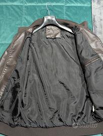 Vendo bellissimo giubbotto da uomo modello bomber in ecopelle (pelle sintetica) color marrone scuro/testa di moro. Il design è moderno e pulito, perfetto per l'autunno e la primavera.