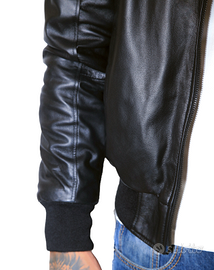 Giubbotto da uomo, stile bomber, in vera pelle ovina di nappa, colore nero lucido, 100% Made in Italy, no ecopelle, no sintetico!