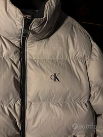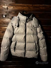 Vendo giubbotto Calvin Klein originale mai usato, taglia M, colore grigio con cappuccio rimovibile.