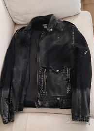Giubbotto/Chiodo in jeans H&M, tg L, in condizioni ottime. Le sfilacciature così come il tessuto sfumato sono originali. Per ogni informazione contattatemi. #giubbotto#uomo#chiodo#veste#homme#jacket#man#moto#