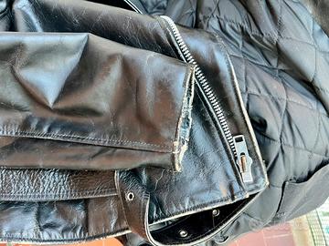 Stupendo chiodo vintage degli anni 80, regolarmente ingrassato, interno trapuntato con tasca, taglia 48 americana