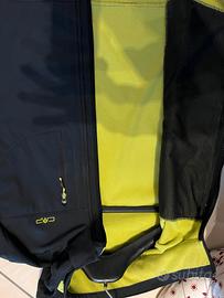 giacca taglia 48 , in softshell , con cappuccio staccabile , lunghezza 72cm. 4 stagioni, 2 tasche laterali, una sul petto con zip, fondo regolabile, interno in pile, polsini antivento.