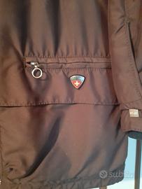 giubbotto impermiabile con cappuccio..doppia chiusura con cerniera lampo e bottoni taglia 44.
