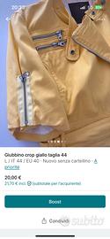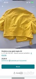 Vendo giubbotto giallo crop, manica 3/4 taglia 44, zip perfettamente funzionante, taglia 44 mai indossato, nuovo