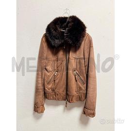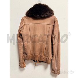BOMBER UNITED COLORS TAGLIA S IN ECO SUEDE CAMMELLO CON COLLO IN PELLICCIA ECO MARRONE SCURO. ZIP FRONTALE TASCHE OBLIQUE CON ZIP E DETTAGLI ARRICCIATI SU POLSI E FONDO. STILE AVIATOR CONTEMPORANEO PER UN LOOK CALDO E GLAMOUR!