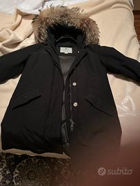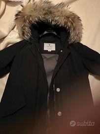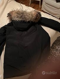 Vendo giubbotto WOOLRICH donna originale taglia XL colore nero con cappuccio con pelliccia di volpe beige.