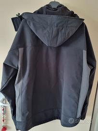 Giubbotto con cappuccio per lavoro impermeabilizzato all'esterno e felpato all'interno. Una tascona capiente all'interno e una con zip. Due tasche con zip all'esterno. 94% poliestere, 6% spandex. Marca Lancelot. Taglia XXL. Colore nero.