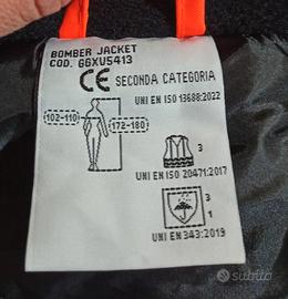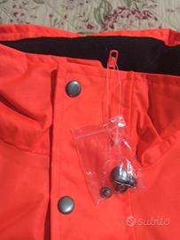 Giubbotto imbottito da uomo arancione in catarifrangente. Taglia XL. Nuovo, mai indossato, ancora con i bottoni di ricambio attaccati alla cerniera