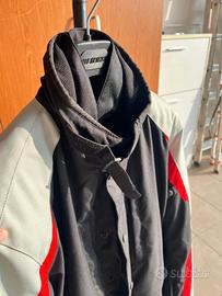 giubbotto con chiusura a clip più 2 cerniere sottostanti. sul colletto presente laccetto con strappo x chiusura .4 tasche con cerniera davanti..presenza di leggere macchioline quasi impercettibili. possibile avere più foto a richiesta.