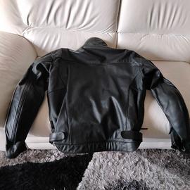 Si tratta di un giubbotto in vera pelle, marca IXS TG XL colore nero con due sottili cordoli grigi che vanno dalle spalle alla fine delle maniche. Ci sone delle gomitiere incorporate e spalline volendo estraibili. Come si può vedere dalle foto non è stato quasi mai utilizzato.