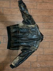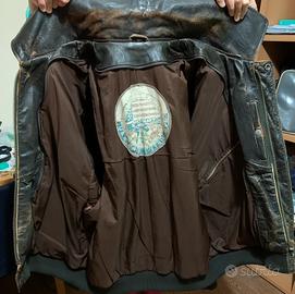 Vendo giubbotto in vera pelle "Vintage" anni 90 modello Top Gun replica di quello usato da Tom Cruise nel film. Il giubbotto è in buone condizioni, la pelle è in stile "invecchiato" e non presenta particolari segni di usura. È inoltre presente imbottitura sia per il giubbotto che per il colletto, che si può togliere o inserire attraverso una cerniera. Taglia XL. Se vuoi rivivere i fasti di quegli anni non puoi non avere un giubbotto di questo genere.