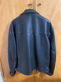 Giubbotto di pelle, colore nero, taglia XL, comprato in Inghilterra con pellame molto spesso e resistente, pesante e caldo, in perfette condizioni perché usato pochissimo, nessuna macchia, nessun segno di usura o abrasione, ottimo anche per utilizzo in moto, con n.2 tasche esterne aperte, una tasca esterna con zip, una tasca interna con bottone, regolazioni laterali della larghezza giacca, regolazioni larghezza polsi, vendesi 99 euro