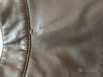 Articolo veramente originale e messo bene, la pelle è tenuta molto bene tranne per quella piccola parte evidenziata in foto, che è situata sulla parte posteriore sul livello del collo.