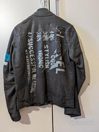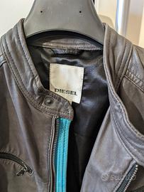 Giubbotto marrone con inserti turchesi e bianchi e scritte bianche. Vera pelle marchio Diesel originale.