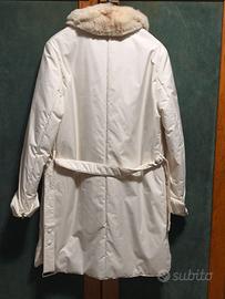 Giubbotto donna colore avorio collo in pelliccia maniche con cerniere 4 tasche cintura Taglia M Nuovo, mai utilizzato.