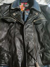 Giubbotto in pelle jeans donna griffato da collezione Dolce&Gabbana . Originale verificabile anche da targhetta interna e codice QR