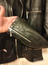 Giacca in pelle nera,ottime condizioni con particolare del colletto con automatici staccabile e diventa un colletto alla coreana