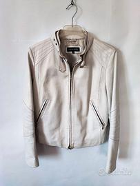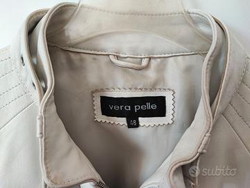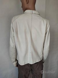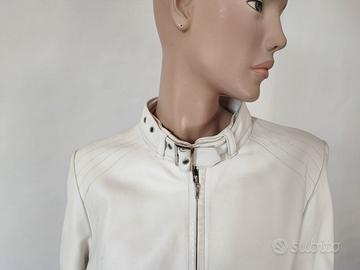Giubbotto donna bianco foderato in pelle, trapuntato sulle maniche e sulle spalle, taglia IT48, in ottime condizioni, spalle cm 42, manica cm 64, lunghezza cm 54