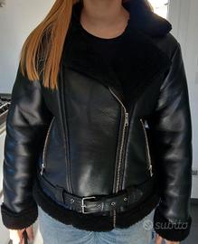Giubbotto donna in pelle nero con interno pelliccia Terranova taglia L indossato un paio di volte come nuovo