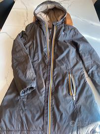 Giacca 3/4 antipioggia K-WAY da donna in nylon ripstop antistrappo, impermeabile 3000mm, antivento, traspirante 3000mm e termosaldata. Fodera in morbido pile. Imbottitura termica. Slim fit. Cappuccio fisso. Apertura full zip. 2 tasche con zip. Logo K-WAY ed etichette interne stampate.