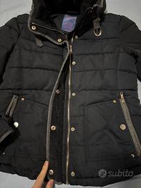 Il collo è alto e foderato in morbida pelliccia sintetica nera. Chiusura frontale con zip e bottoni a pressione e varie tasche. La taglia è una L (Large).