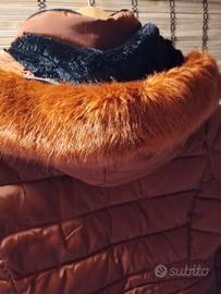 Giubbotto donna color mattone, con cappuccio con pelo stesso colore, interno spalle con pelo nero. Taglia XL, vestibilità M/L. Ritiro a mano.