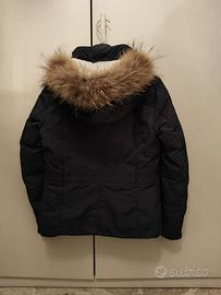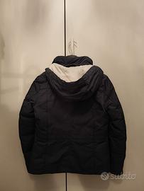 Piumino corto donna in piuma d'anatra, colore blu, marca 313, tg. 40. Con cappuccio removibile a cui è possibile applicare il bordo in pelliccia (come da modello)