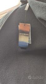 Giubbotto Emporio Armani nuovo, originale, colore nero, taglia S, made in Italy, modello fashion con chiusura asimmetrica, bottoni logati, fantasia in velluto, ideale per eventi, mai usato.