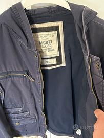 Giubbotto estivo da uomo, marca ALCOTT, taglia XL, mai utilizzato risulta come nuovo. VINTAGE. Colore Blu scuro con cappuccio.