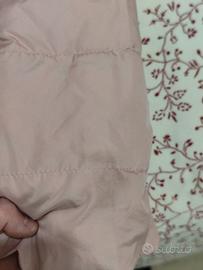 Piumino rosa cipria con cappuccio e bordo in eco-pelliccia, perfetto per l’inverno ❄️