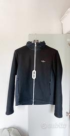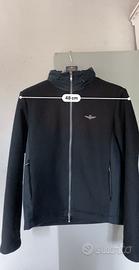 Giubbotto - giacca Aeronautica Militare felpata in blue navy con logo classico nel petto e bandiera italiana nel colletto come dettaglio di lusso.
