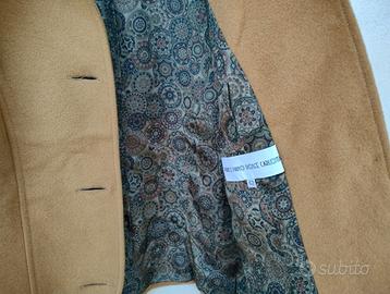 Giubbotto, giacca esterna in ottimo tessuto panno color giallo ocra, caldo ed elegante colore autunnale-invernale. Marchio pret a porter Piano Piano Dolce Carlotta. Taglia 42. Modello corto, avvitato, con spalline. Bellissimi bottoni esagonali in metallo traforati. Fodera in raso di cotone stile disegni cachemire tonalità verde. Risvolti alle maniche. Eccellente stato. Eccellente manifattura. Indossato pochissimo. Misure in cm.: Circ.torace 94 - lungh.dalla spalla all'orlo 50 e 58 - lungh.manica 58 - lungh.spalla+manica 74. Disponibile a spedire