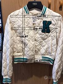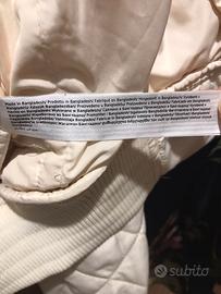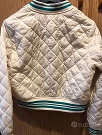 Giubbotto o giacca bomber in stile college trapuntato, di colore avorio/beige chiaro, taglia S.