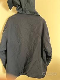 Giacca in buone condizioni con 3 strati di chiusura (2 cerniere e 1 a bottoni), tasca interna e due ampie davanti (sempre con cerniera). Cappuccio estraibile, in generale veste comodo.