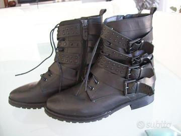 "Scarpe scarponcini mezzistivaletti Stradivarius 38" originali, da donna, allacciati con cerniera e fibbie, suola in gomma.