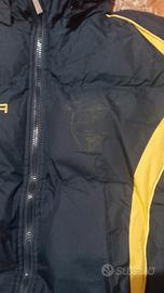 Il giubbotto era personalizzato per una squadra di calcio quindi sia il logo che lo sponsor sono ancora visibili come da foto allegate. Per il resto condizioni più che buone, può essere usato per sport o eventualmente per lavori all'aperto.