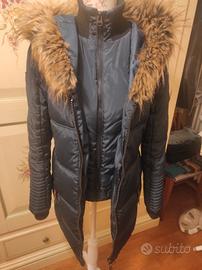 Caldissimo e comodo giubbotto imbottito piumino donna colore blu notte cangiante con robusta zip esterna