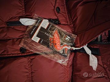 Giacca imbottita donna taglia IT42/44 con cappuccio imbottito removibile e pelliccia sintetica.