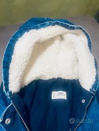 Giubbotto imbottito in denim con pelo nel cappuccio l.