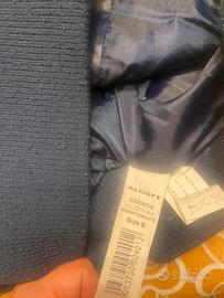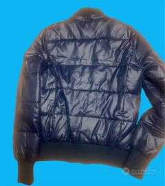 Colore blu notte, elegante e versatile. Modello corto con zip frontale, caldo ma leggero, perfetto per un look casual e alla moda.