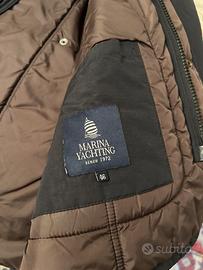 Giubbotto nero imbottito Marina Yatching con cappuccio. Trapuntato all’interno. Chiusura con cerniera e bottoni. Tre grandi e comodi tasconi frontali. Ottimo stato, ottime rifiniture
