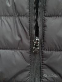 Giubbotto imbottito senza cappuccio, colore blu scuro, con 2 tasche esterne ed 1 interna, composizione: esterno 100% poliammide, fodera interna 100% poliestere. Capo giovanile, leggero ma caldo. Usato in ottime condizioni. Difetto: il cursore della zip è come da ultima foto ed il lato dove si aggancia è leggermente scucito