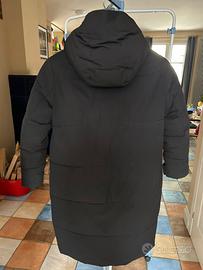 Con cappuccio, 2 grandi tasche laterali e una interna. Bretelle interne.