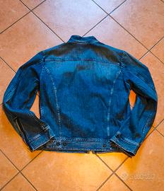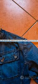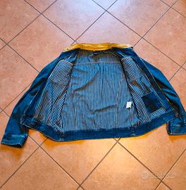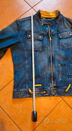 Bellissimo giubbotto in jeans della Diesel. Condizioni eccellenti Tg XL Chiusura: Zip integrale frontale con tiretto. Dettagli: Colletto alla coreana con fodera interna a contrasto in giallo e polsini regolabili tramite cerniera. Tasche: Tasche applicate sul petto con bottoni Lavaggio: Denim blu Misure all' interno delle foto