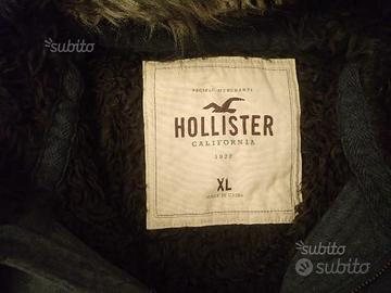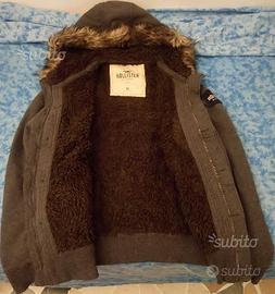Giubbotto con esterno in felpa Hollister Little Dume originale, come nuovo; cappuccio e interno del giubbotto con pelo. Chiusura con zip e bottoni. due tasche laterali, taglia XL, colore grigio scuro.
